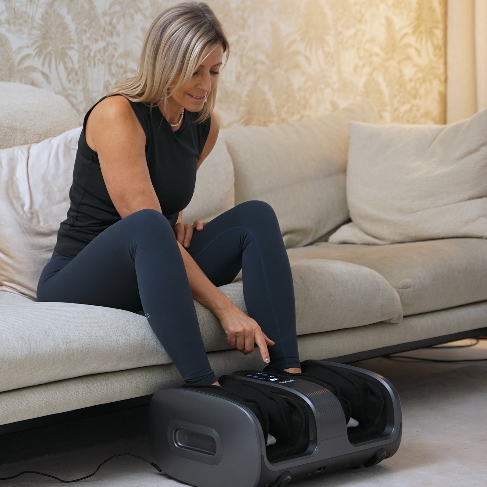 Min trofasta kompanjon när jag arbetar Jag använder fot- och vadmassagern medan jag arbetar och jag har nästan blivit beroende av den. 🙈 Luftkompressionen känns så skönt och trycket är lagom, och värmen gör bara hela upplevelsen ännu bättre. Den hjälper verkligen mina ömma vader, och min rastlöshet i benen blir bättre ju mer jag använder den.